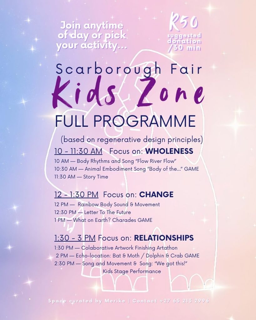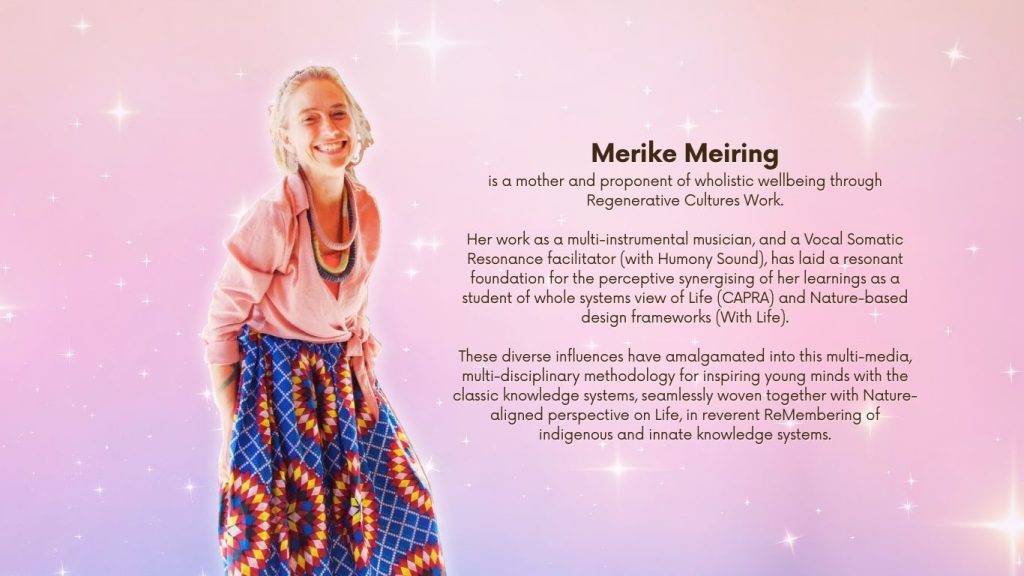“I had the honour to witness Merike love the little children at Camel Rock market, Her work reflects a rare devotion to presence, where children are met with respect, patience, and joy. Through song and play, learning unfolds as something natural rather than imposed, Ancient Universal wisdom, rooted in listening and trust. In a busy and distracted world, this offering restores a sense of simplicity and belonging. It reminds Us that true teaching begins with connection. What Merike shares carries care, humility, and a deep love for early life and our future.”