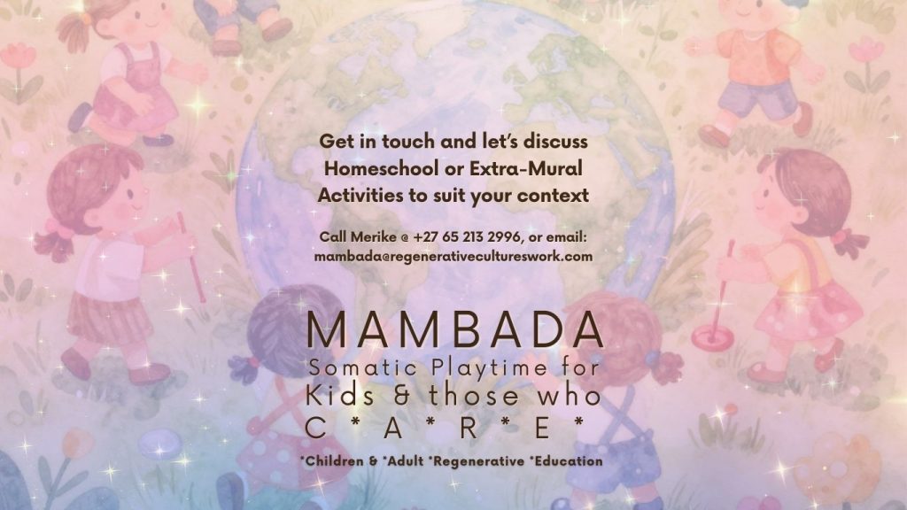 MAMBADA Somatic Playtime for kids and thise who C*A*R*E* (*Children & Adult Regenerative Education) is now offering spaceholding and events.